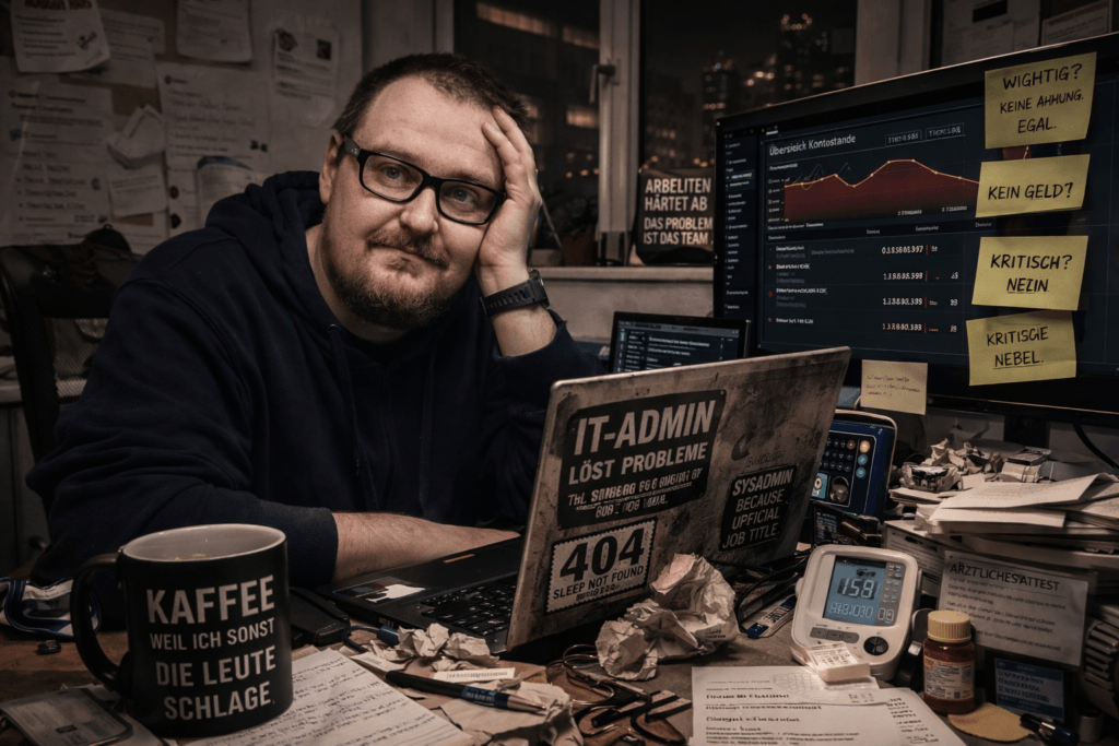 Und dann sitzt du da. Erster Tag. Laptop da. Zugänge irgendwie zusammengeklickt. Alle freundlich. Wirklich. Nette Leute. Kaffee ist okay. Gespräche sind okay.